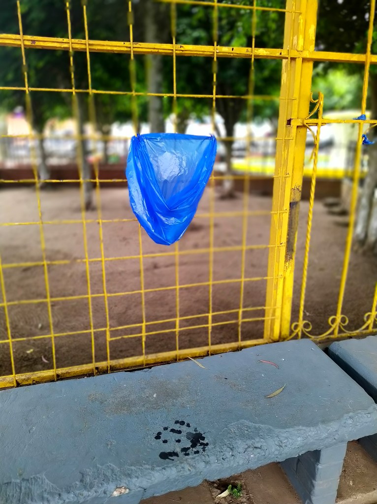 Los botes para basura son algo que ni siquiera existe en ese lugar y en vez solo bolsas para que puedan colocar sus desperdicios las personas.